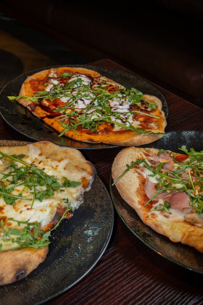Pan tomate Serrano, houmous et gressins, guacamole et tortilla chips, polenta al forno gorgonzola.